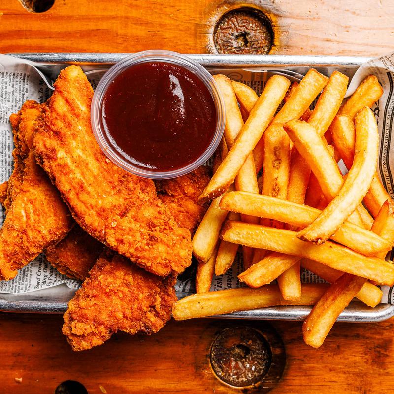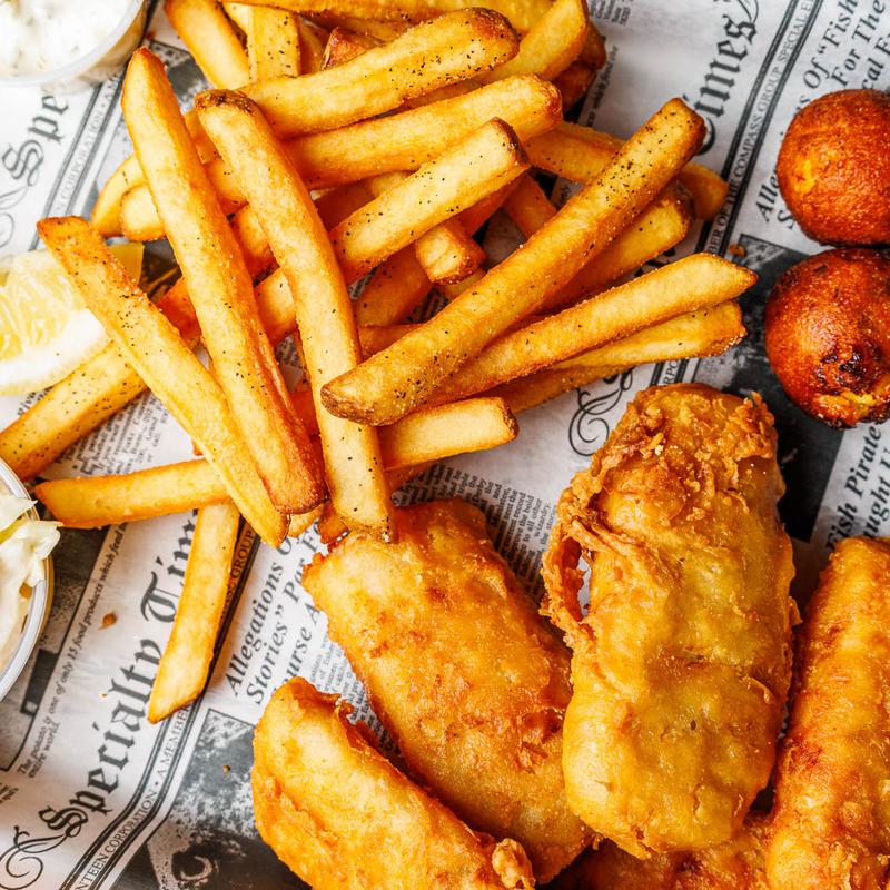 Puff battered cod, fries, hush puppy, and coleslaw. Served with tartar sauce